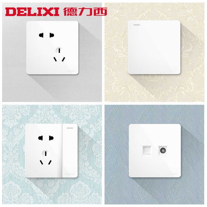 Delixi switch socket Household pure plate with double - controlled five - hole socket 86 type dark porous wall