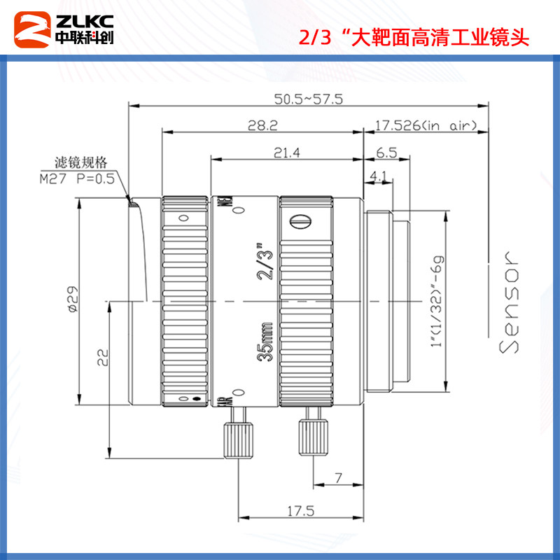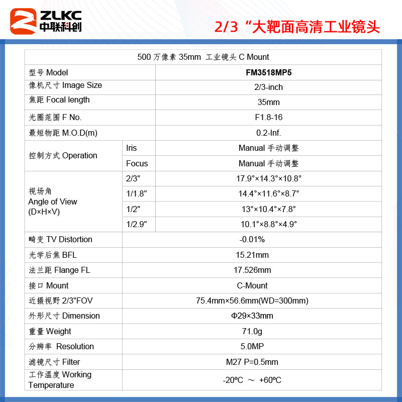 Middle UNOCI Industrial Camera Lens 35mm Manual aperture C Aperture Lens 5 million lens FA No Distortion Spot