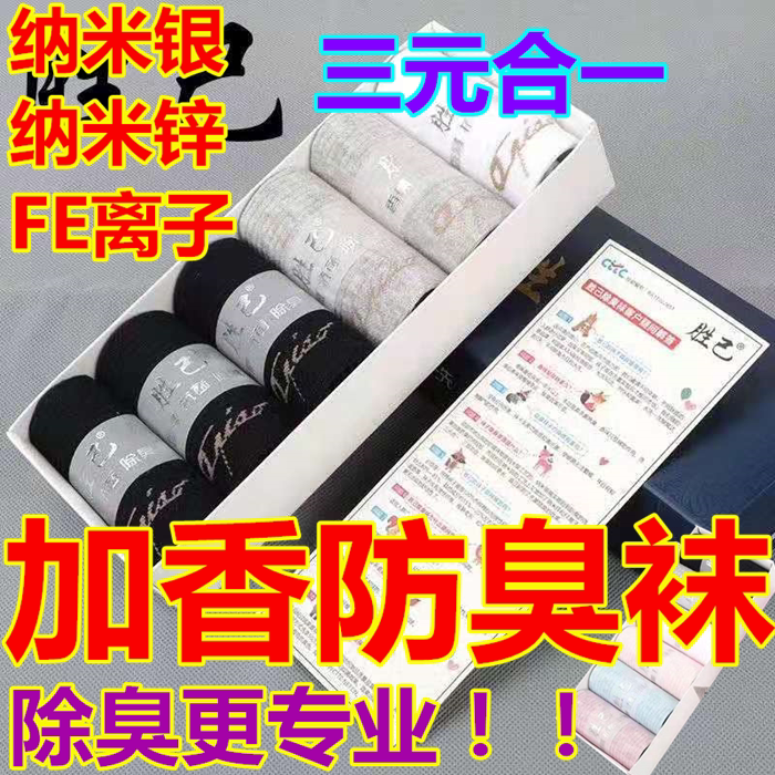 Autumn-winter socks men's sweat-and-air plus aromas silver ions antibacterial deodorant socks pure color midcylinder sports stockings six double