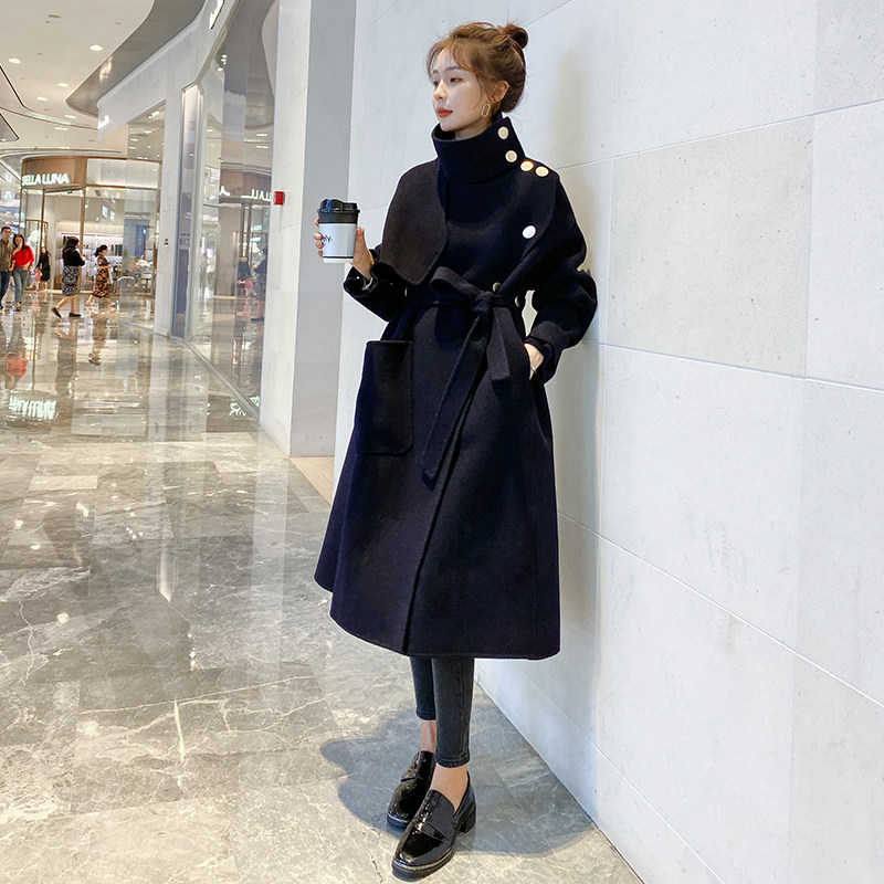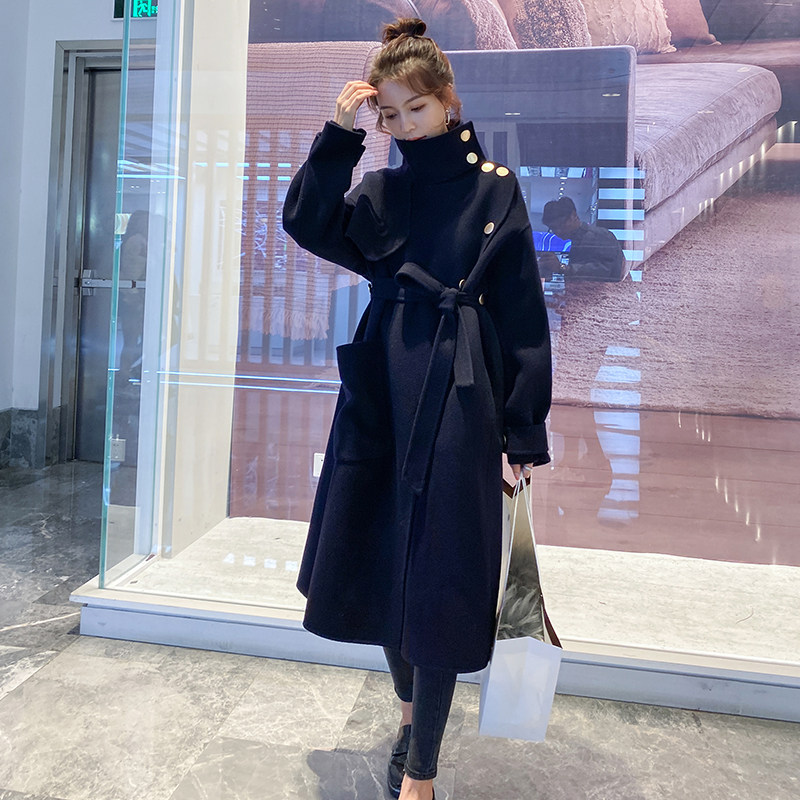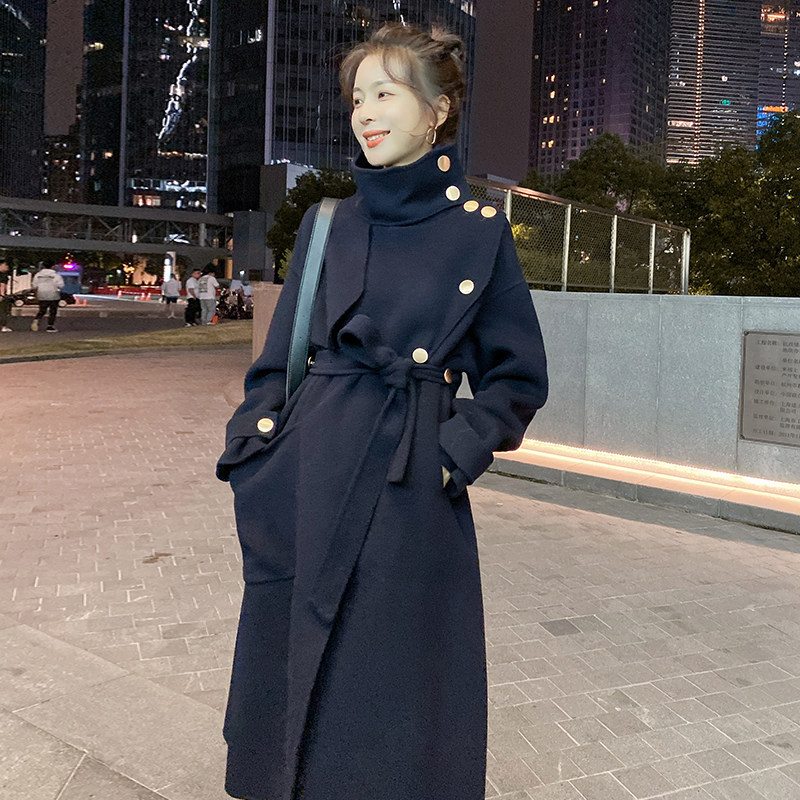 sandro moscoloni2020 autumn winter new small fragrance plus-size plus-size blue dress Blue Lace Coat Tide