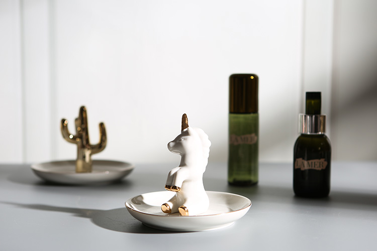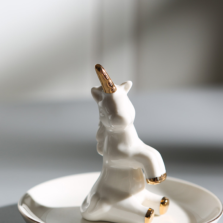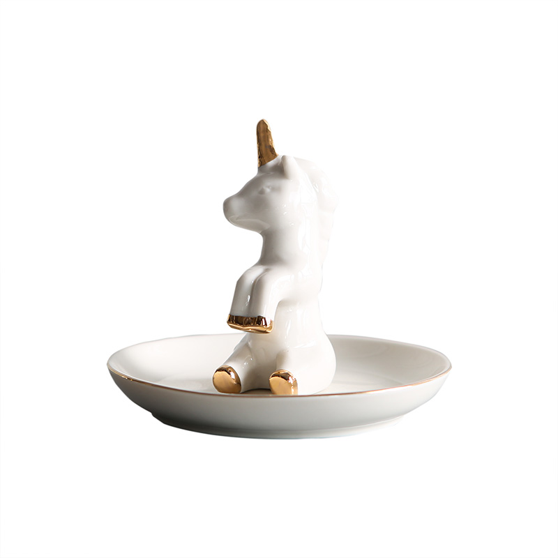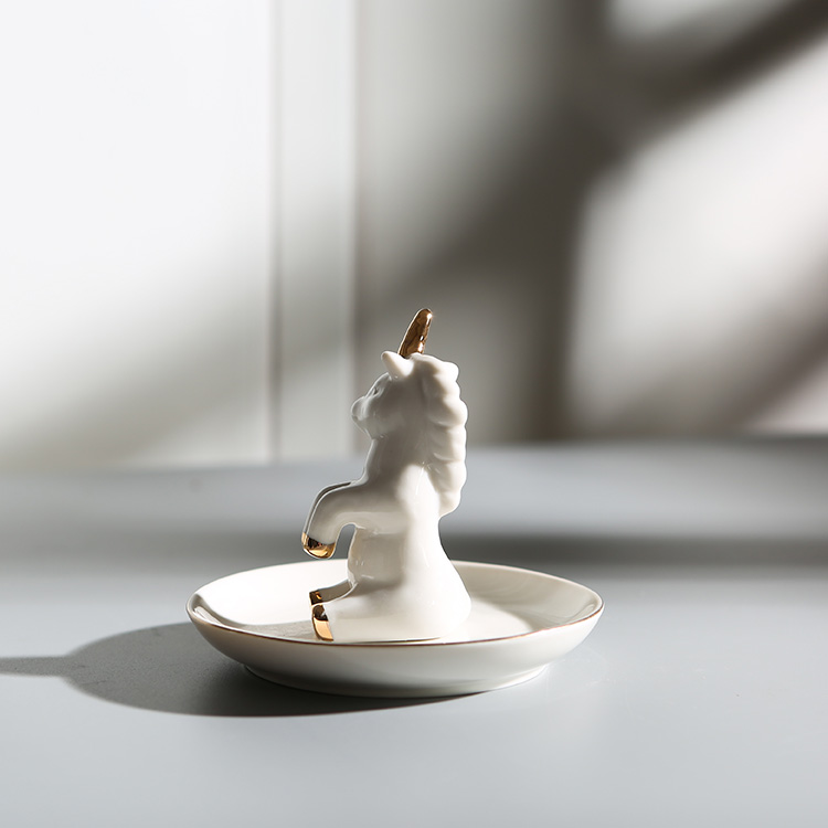 Nordic style ceramic Unicorn storage plate Ring bracelet jewelry plate Home hotel desktop ornaments