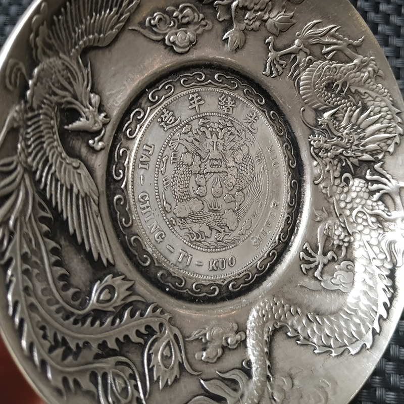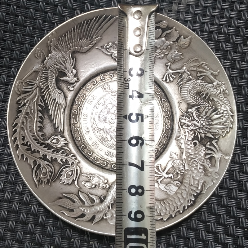 Antique Collection Imitation Silver Plate Dragon Phoenix Chengxiang Silver Plated Cupronickel Plate Bottom Silver Dollar Pattern Random Shipment