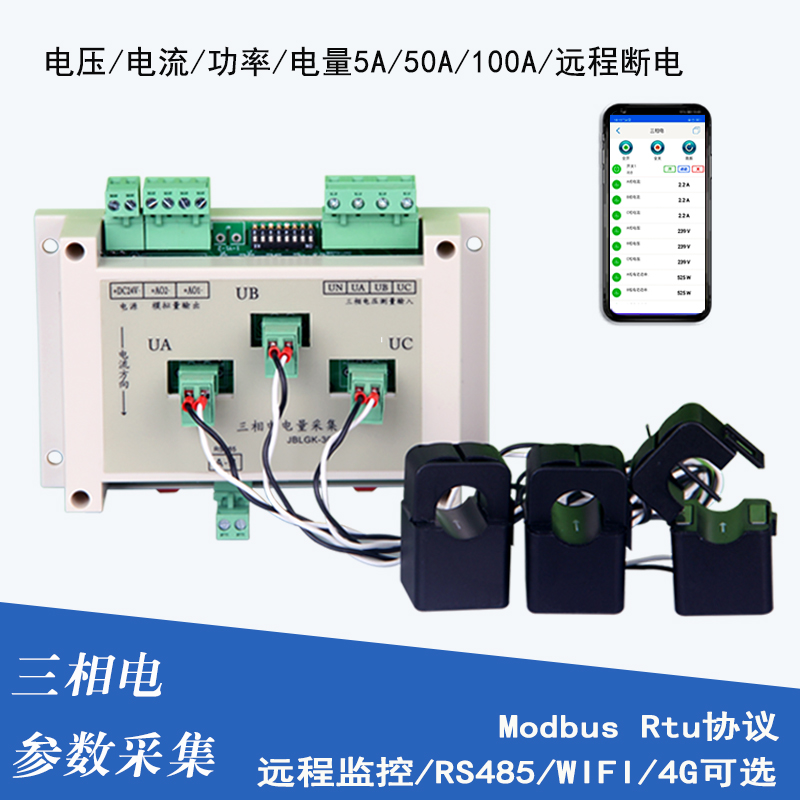 Three-phase voltage and current detection module integrated current transformer RS485 power collection remote 4G wireless APP