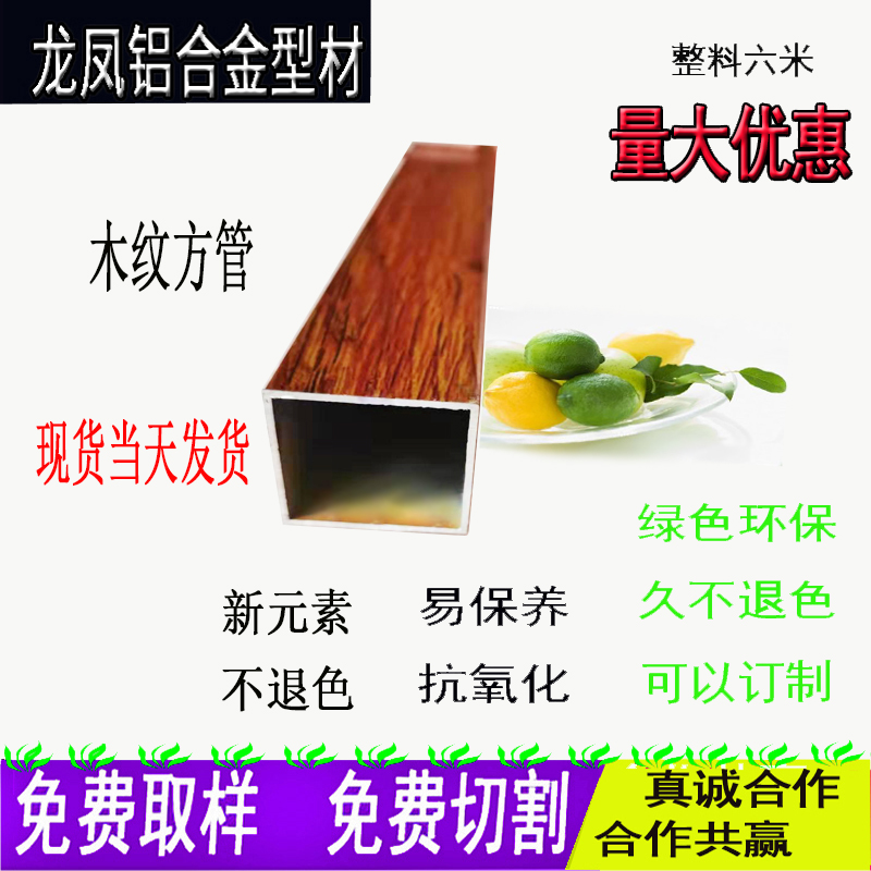 Aluminum alloy wood plate cord pipe color printing quad pipe outdoor pavilion ceiling wooden oak rubber pipe 25*1
