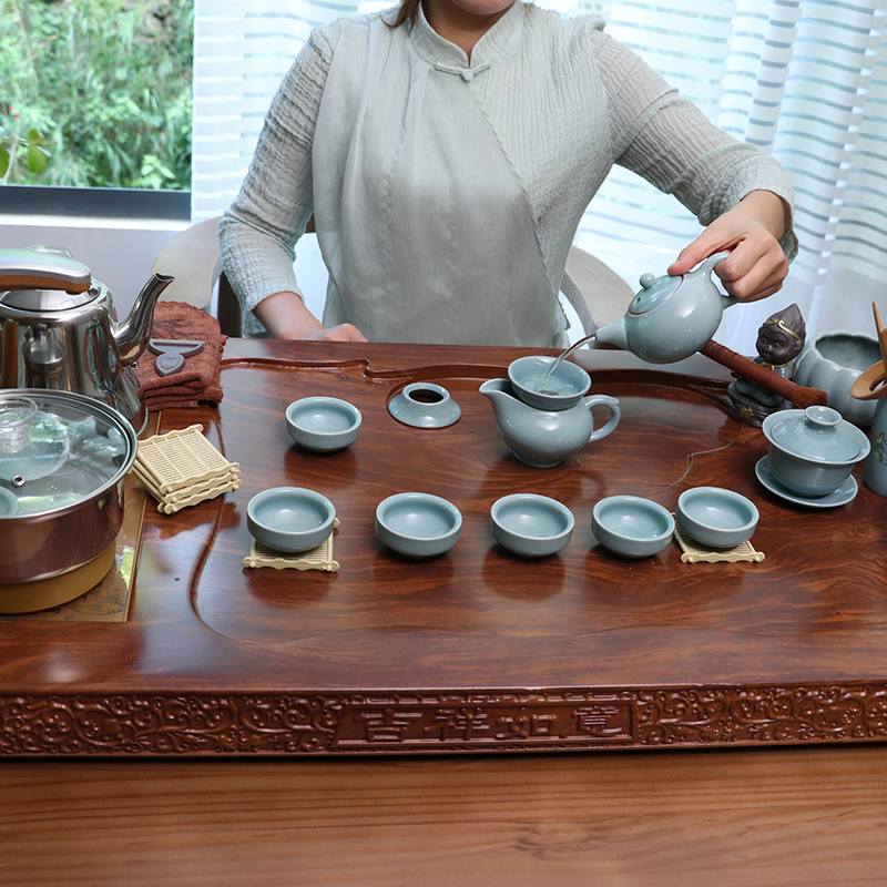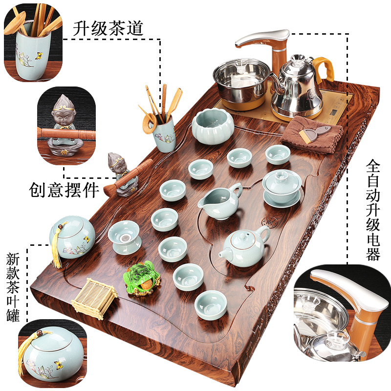 Solid Wood tea tray household ceramic kung fu tea set set automatic integrated induction cooker simple office tea table