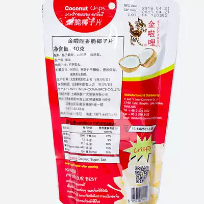 Thailand imported Golden Lai crispy toasted coconut slices 40g * 5 bags of dried fruit office casual snacks