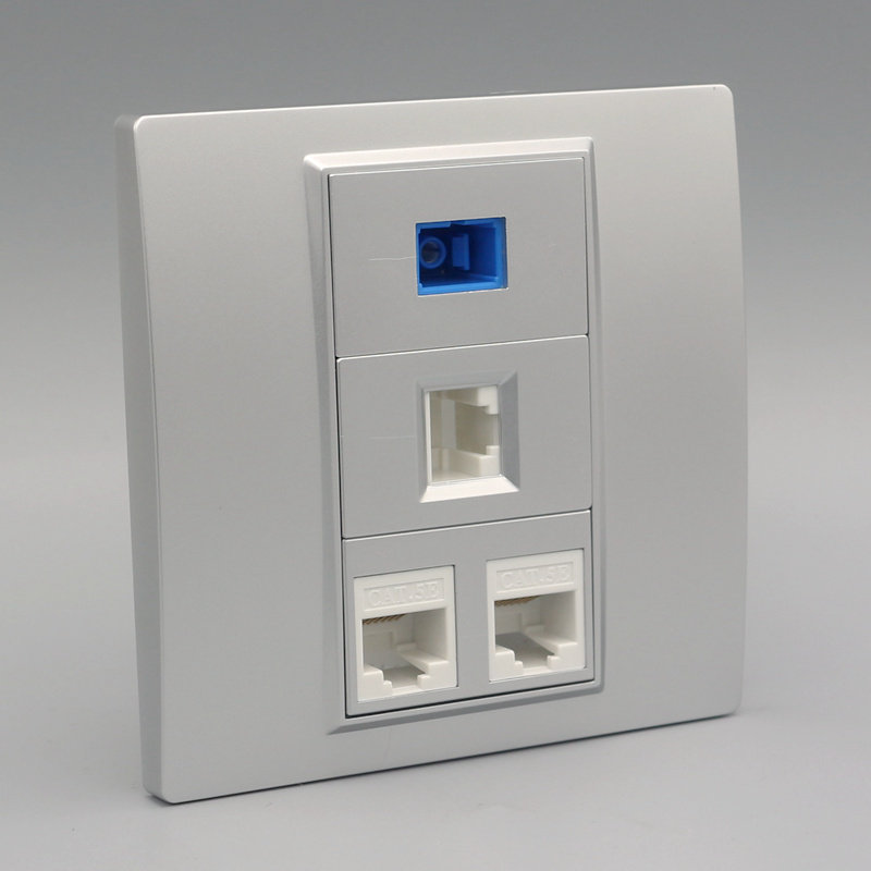 Silver 3 Internet plus SC fiber optic broadband panel Three-mouth RJ45 computer module Interface Network route broadband panel