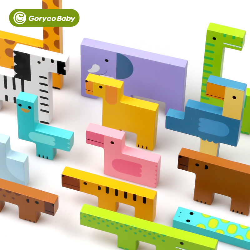Goryeobaby children's beneficial intelligence early childhood building blocks animal Tetris puzzle wooden toy 236 years old