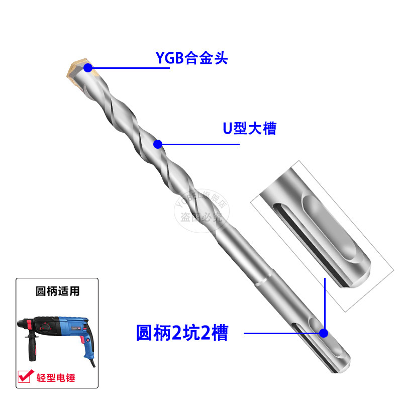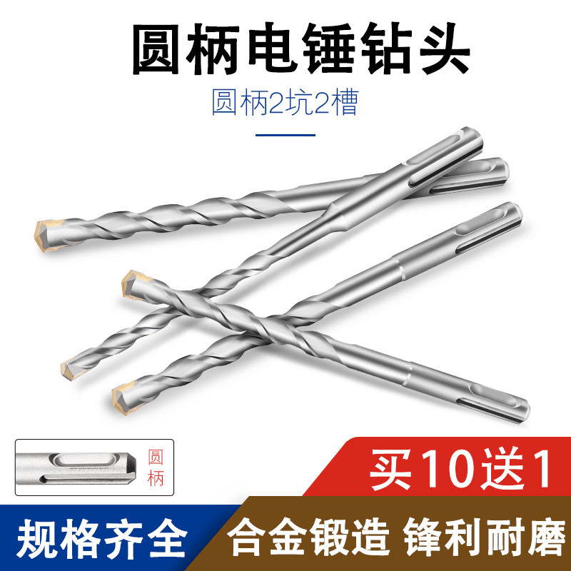 Electric hammer drill bit drilling 6mm round head two pits two grooves concrete wall 8mm impact drill alloy drill bit round handle