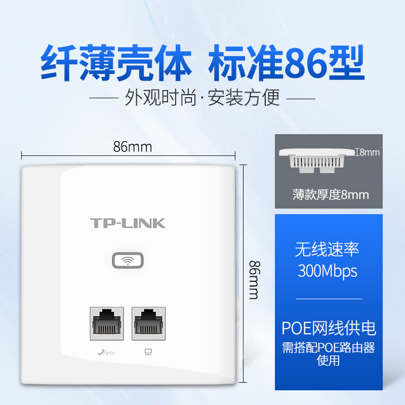 TPLINK Wireless ap Panel 86 Wall wifi Socket with IPTV TV Phone Entry Wall Router poe Power Supply Hotel Villa Home Full House wifi Coverage