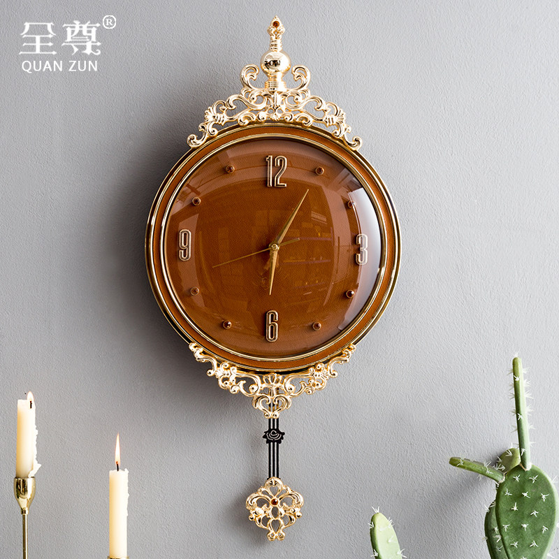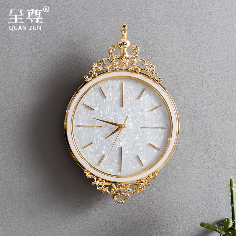 Full modern simple European enamel clock Creative shell wall clock Household light luxury living room Copper alloy wall clock