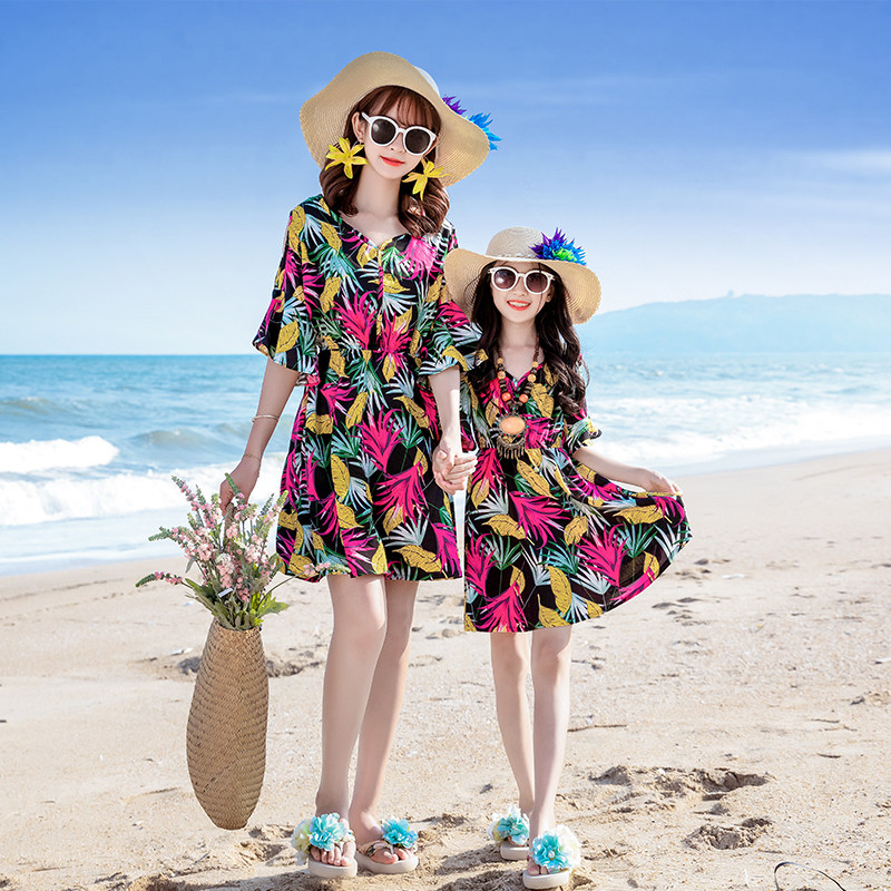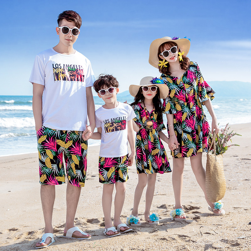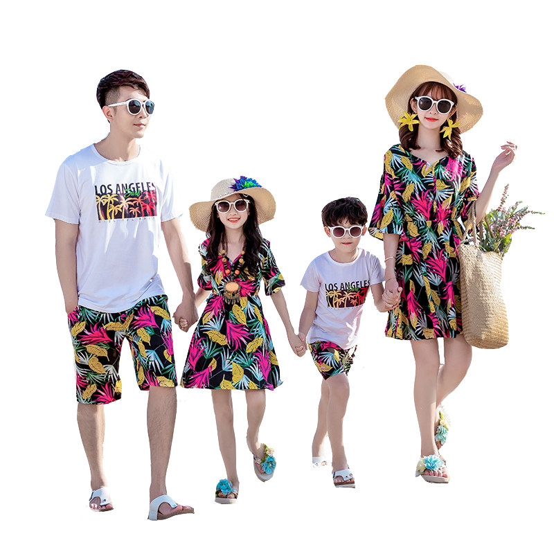 Seaside holiday pro-loading summer clothing 2022 new family of four-mouth beach foreign dress mother and daughter Family suit