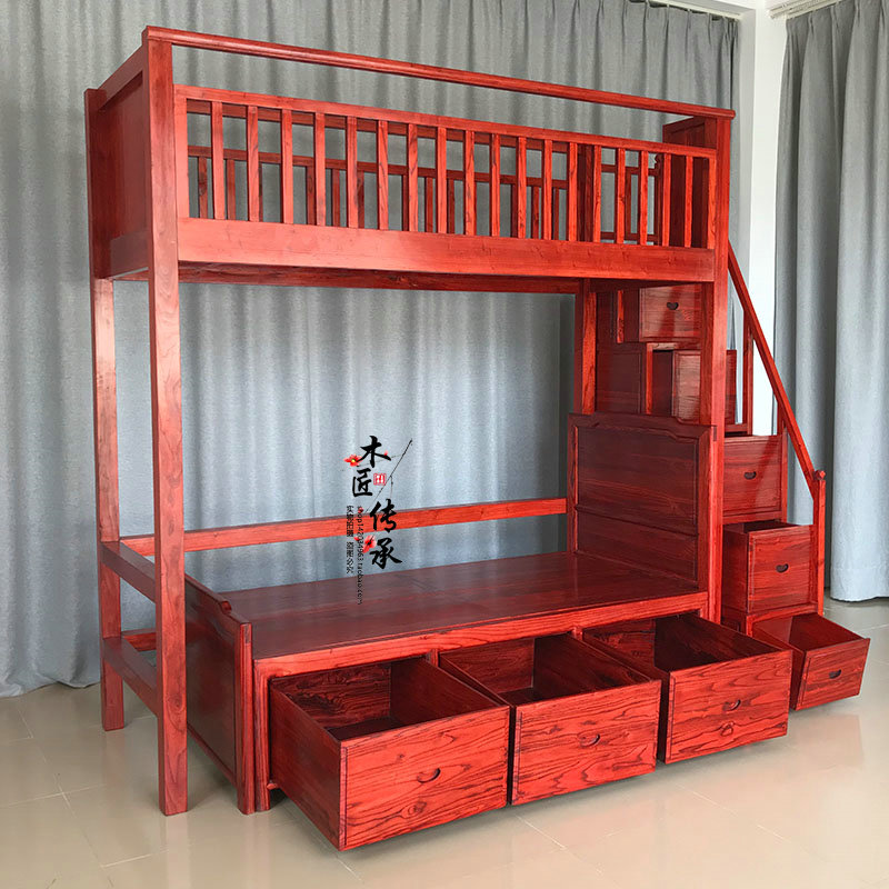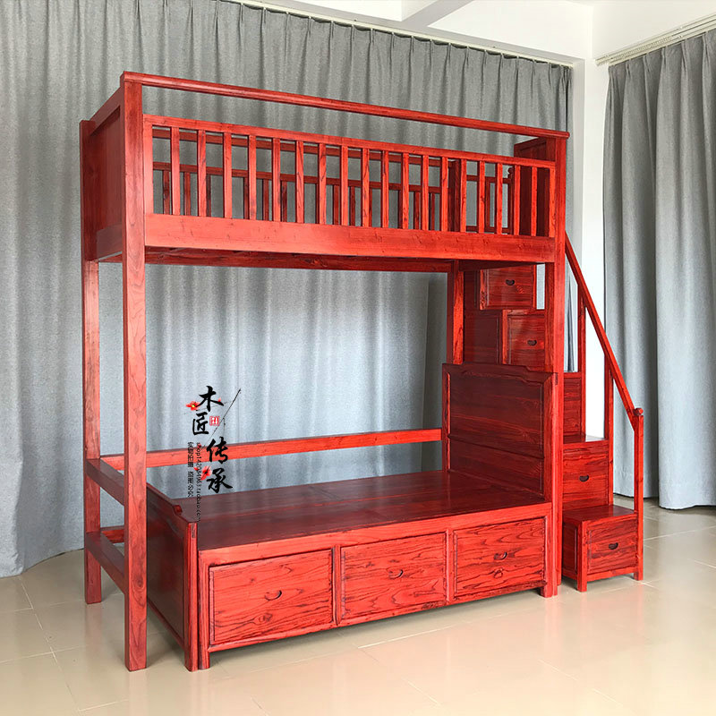 New Chinese primary-secondary bed with stairs old elm wood upper and lower bunk bed with double bed multifunction adult high and low bed children custom-made