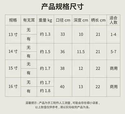 13 inch 33cm1 2 thick without ears (free boiling) 13 inch 33cm1 2 thick ears (free boiling) 14 inch 36cm1 2 thick ear (free boiling) 14 inch