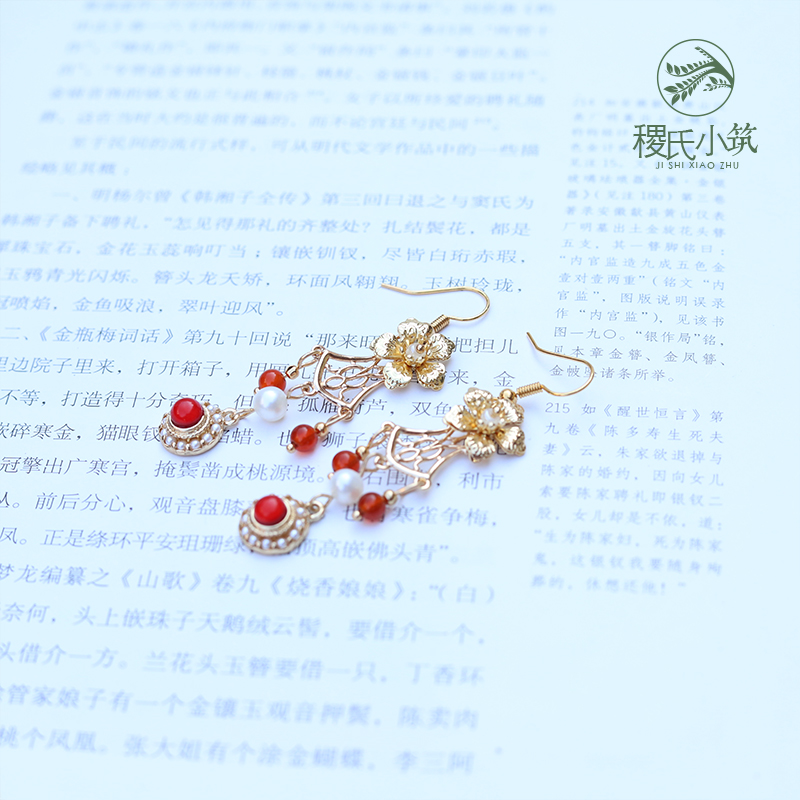 Ji's Little Tsukuba Original Palace Ancient Wind Ornaments China Wind Super Fairy's Earrings Earrings Earrings Earrings Woman