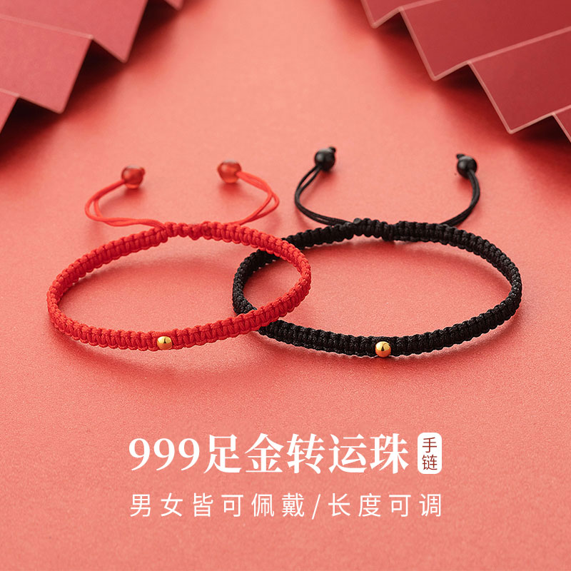 S999 Foot Gold Gold Transfer Beads Handmade Female Ben Year Red Bracelet Handwoven Minimalist Couple Hand Refine Pair