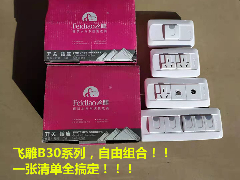 Feidiao B30 switch socket panel Long wall dark installation five holes 118 type double control switch air conditioner plug 118 type