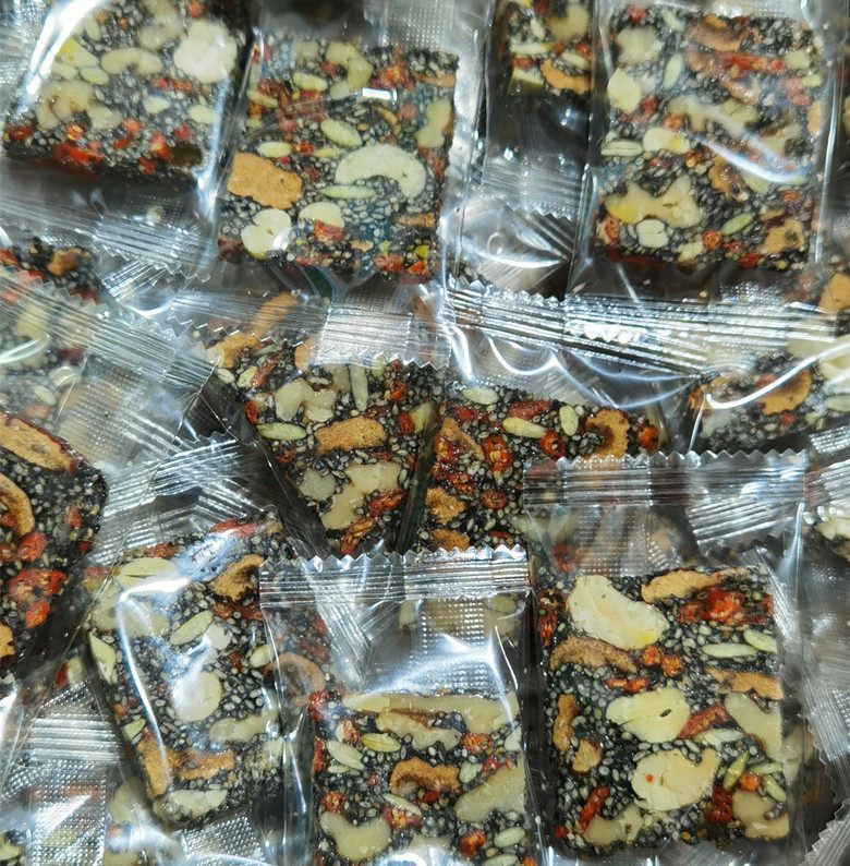 Black sesame, red dates, raw walnut kernels, wolfberry kernels, pumpkin kernels, raisins, cashew nuts, maltose, edible salt