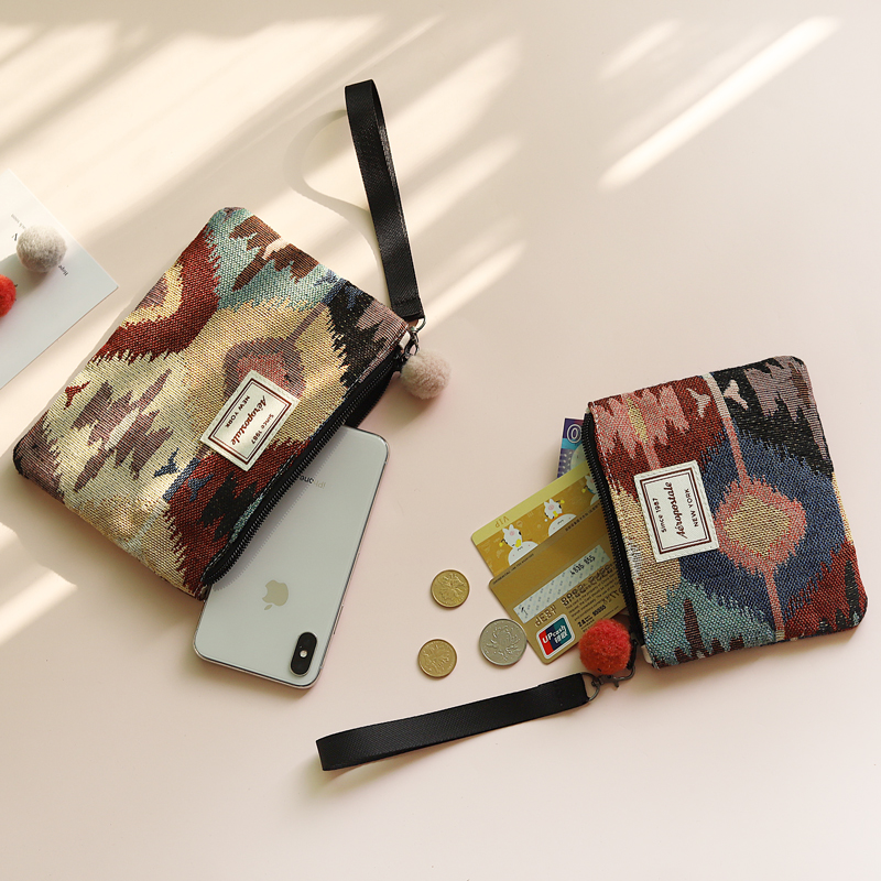 Personality Collider design Name family Wind let mobile phone's small bag canvas hand hold wrist zero wallet female out for portable