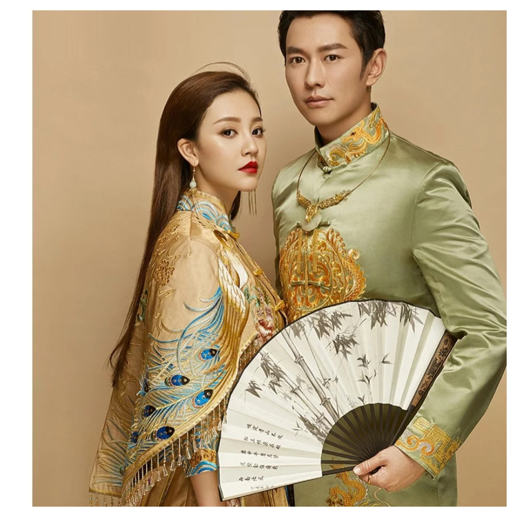 New costume photo men's folding fan photo studio Chinese style silk cloth fan ladies group fan retro photo props