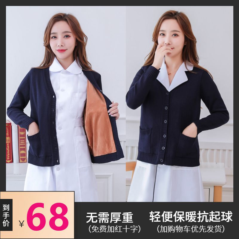 Eijoshi Thickened Nurse Sweater Jacket Plus Suede Hide Blue Doctor Coat Knit Cardiovert Warm Resistant Ball Deep