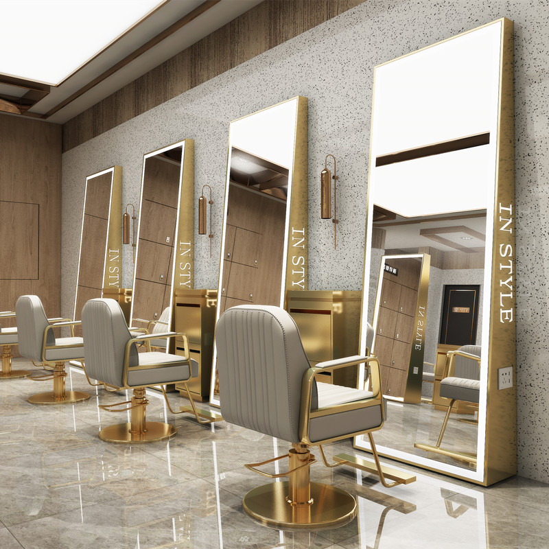 Internet celebrity barber shop mirror table stainless steel floor mirror full body mirror single and double sided hair salon special hair cutting perm dyeing hairdressing