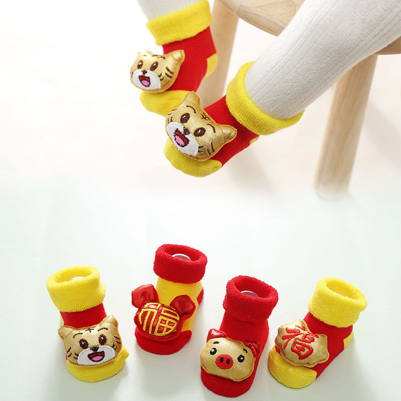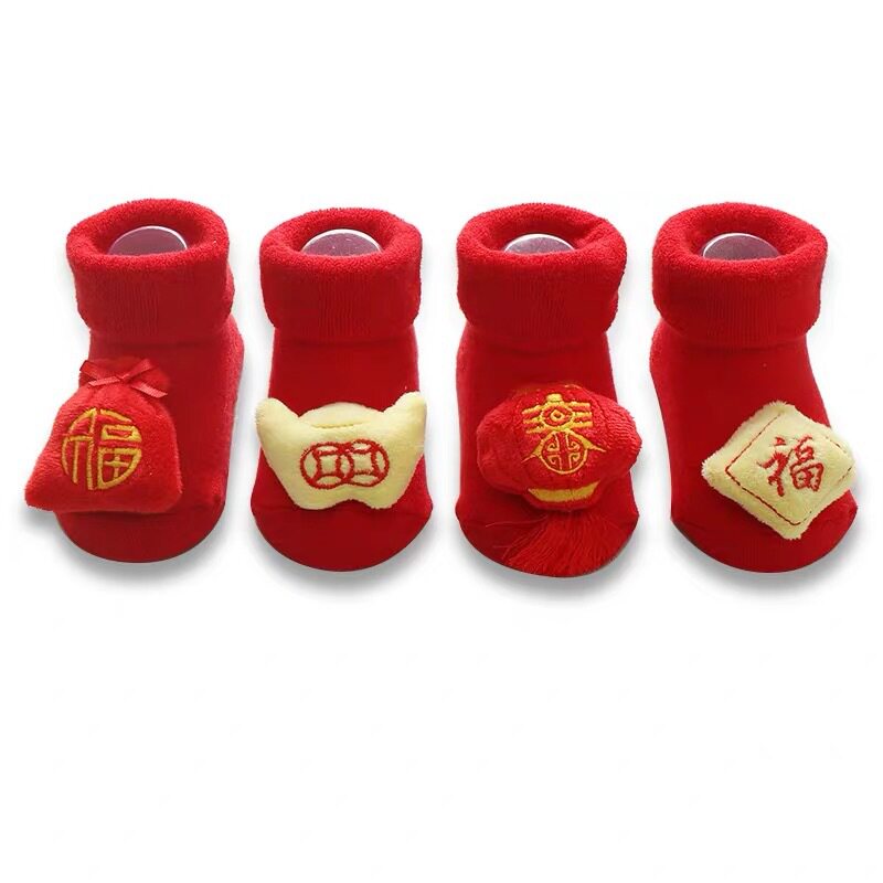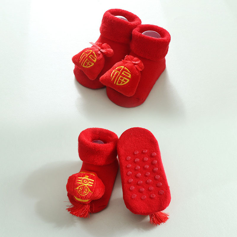 Newborn socks baby autumn and winter thickened full moon New Year's greetings 6 festive red baby 1 year old 3 months terry 0