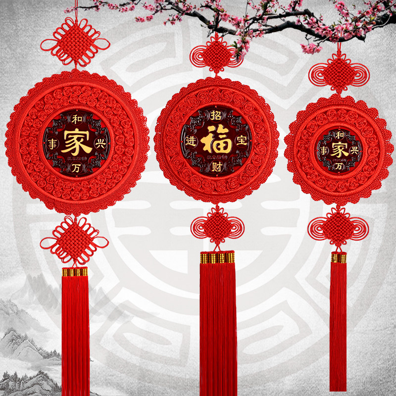 China knot decoration TV wall Peach Wood Fu Characters Large Living Room Decoration Round Town Residence for Spring Festival Jo relocating to Keio hanging decoration