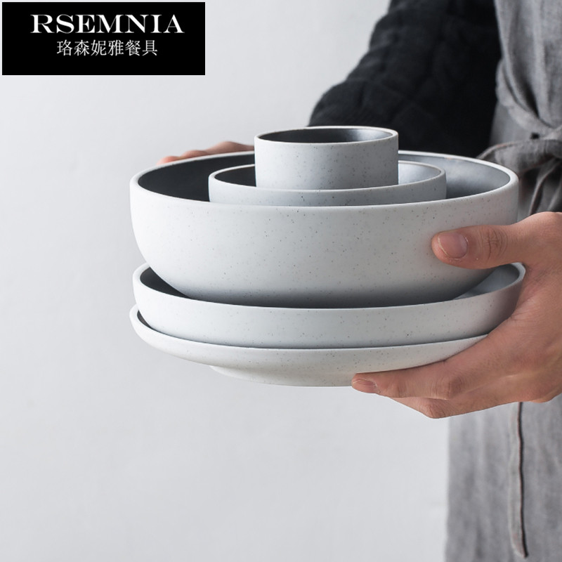 Rsemnia dish suit 2 4 6 people household Japanese dish chopsticks Nordic tableware ceramic dish red creative