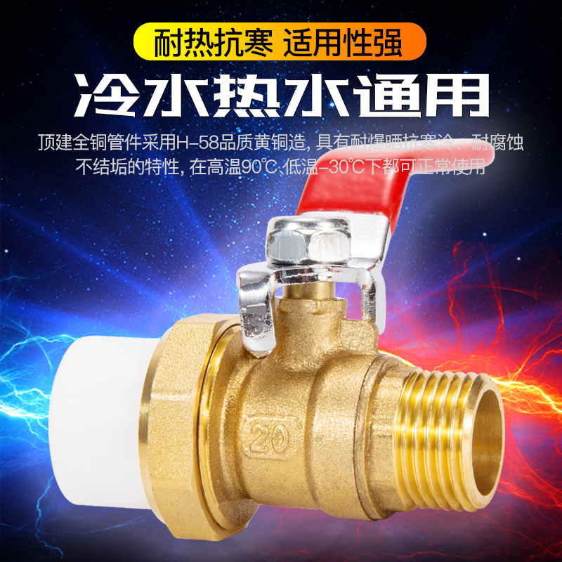 Dingjian All-copper ppr water pipe fittings fittings fittings Hot melt 4 points 20 switch 6 points 25 double live valve Ball valve
