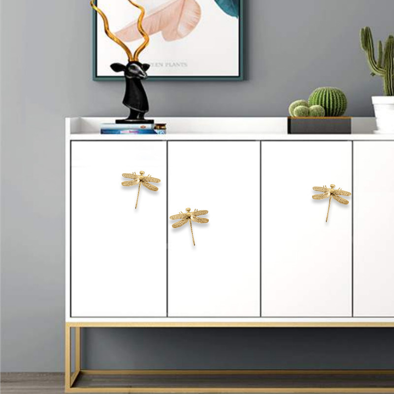 Pure copper dragonfly handle furniture decoration Nordic golden brass wine cabinet drawer cabinet door small handle light luxury creative