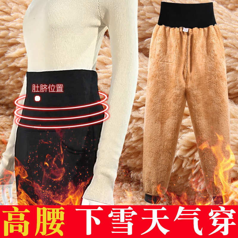 High waist cotton pants woman thickened with inner lap pants woman outside wearing autumn and winter 2021 new lamb suede women's pants warm pants woman