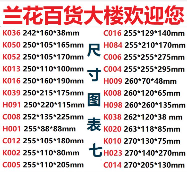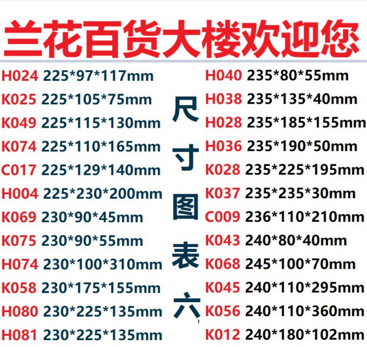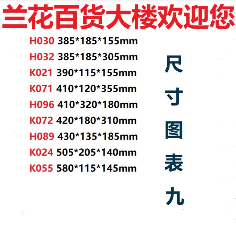 H030 385 * 185 * 155mmH032 385 * 185 * 305mmK021 390 * 115 * 155mmK071 4