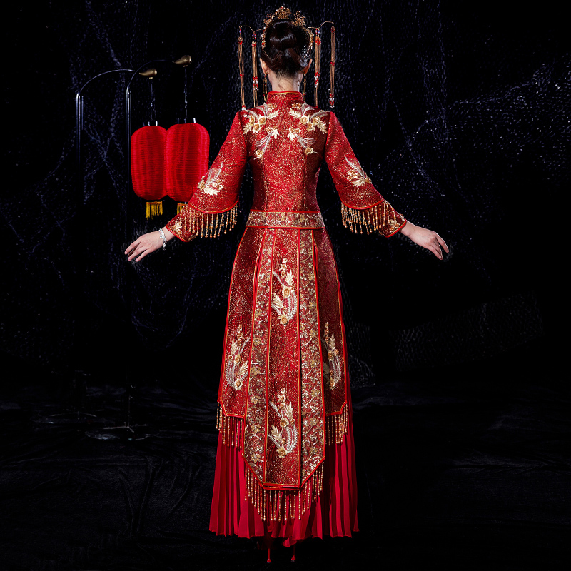 Show Wo Costume Bride 2021 New Wedding Gown High-end Conspiculess Chinese Bridal Suit Show and Feng Hang Show Kimono
