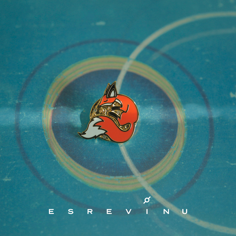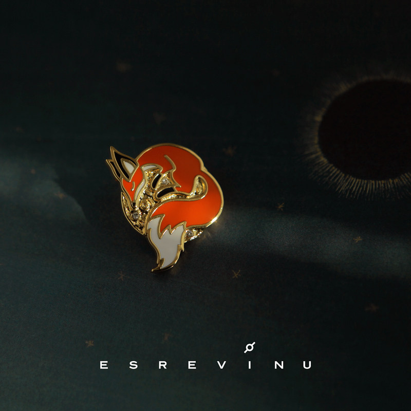 Cosmic Tick "Little Fox on the Moon" ESREVINU Original design Gilded Brooch pin-pin gift