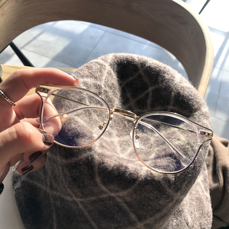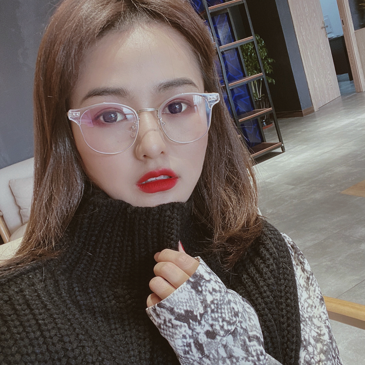 Snowy Lishaw fight Ouyang Nana Street to take the same gold silk glasses anti-blue light flat mirror rice nail black half-frame vegan