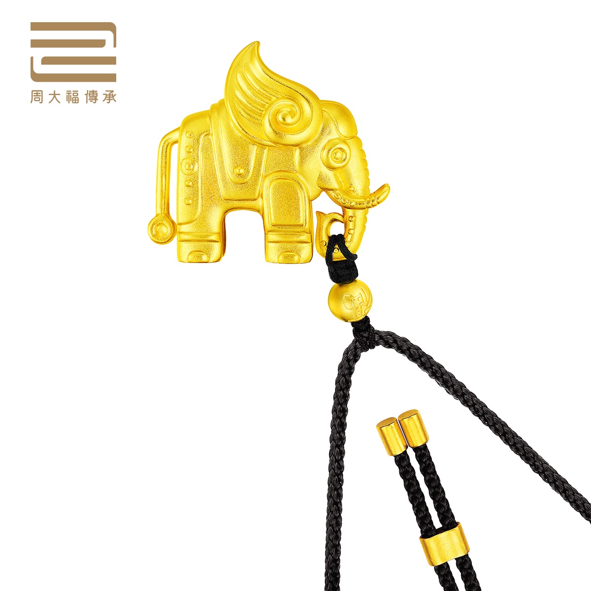 (Custom Dingding) Zhou Dafu Lineup Han Meilin Art Lineage Taiping with Elephant Gold Pendant F220271