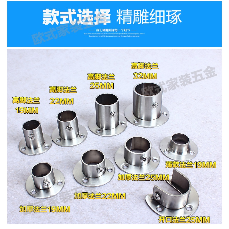 Stainless steel pipe flange seat wardrobe hanger Rod hanger Rod Holder towel rod fixed bracket accessories