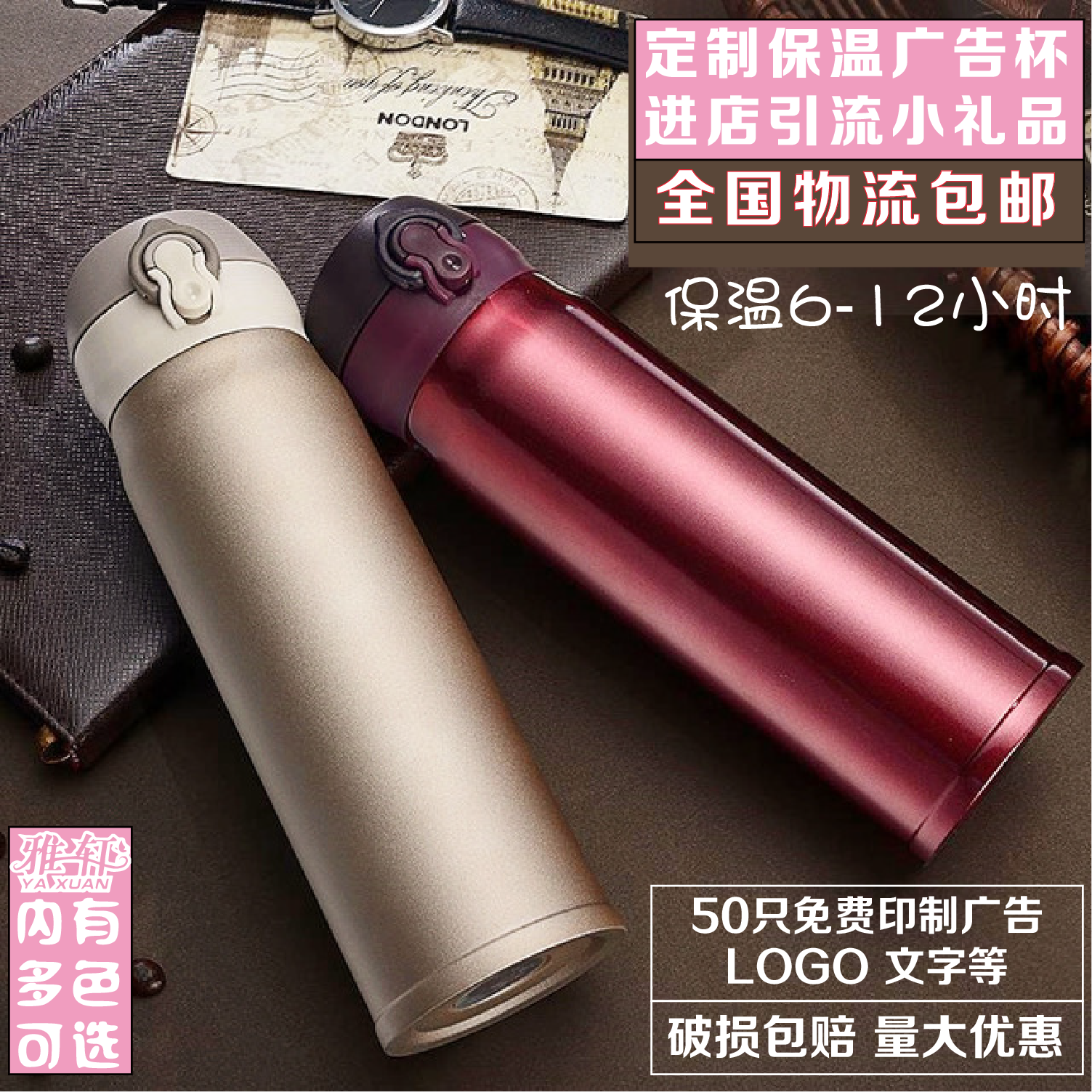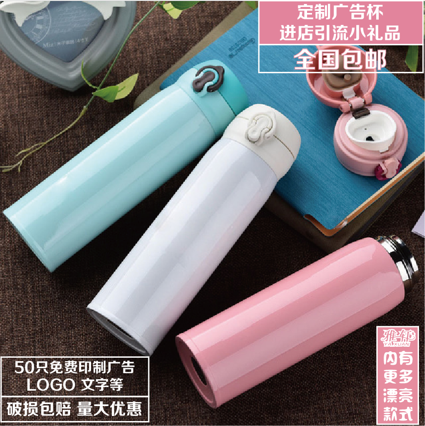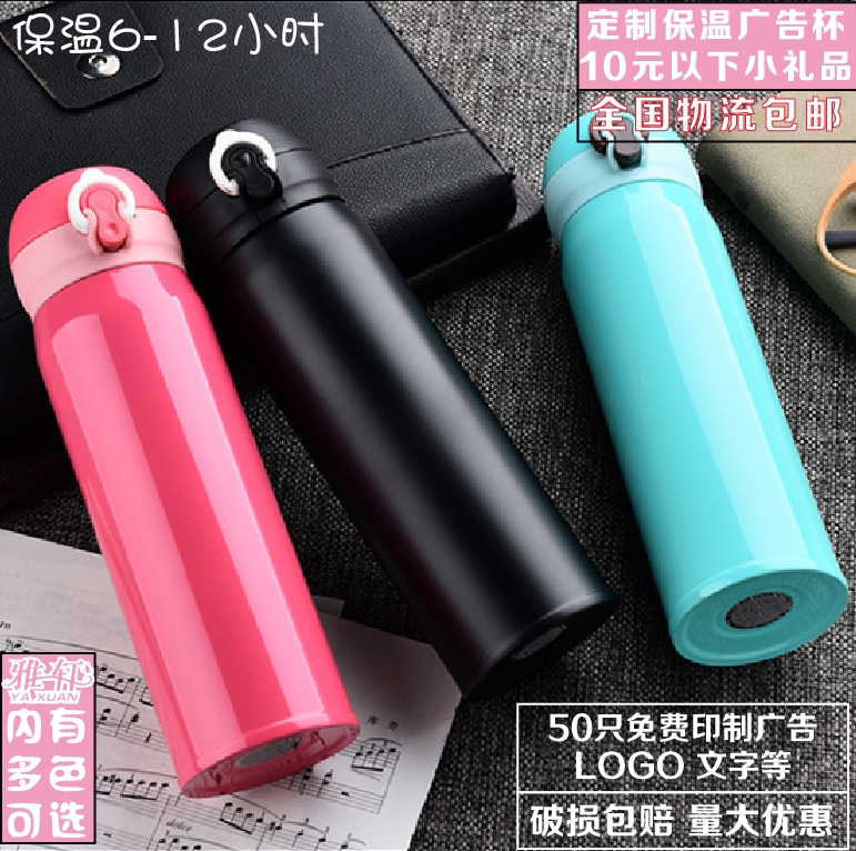 Custom printed word insulated cup double layer stainless steel cup RMB10 less small gift opening shop Qing active water glass-Taobao