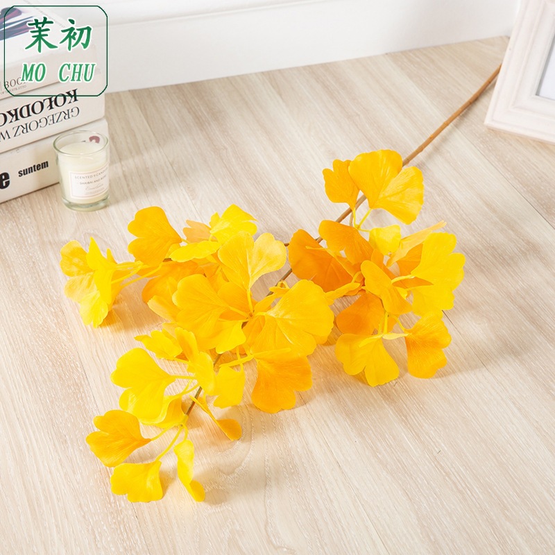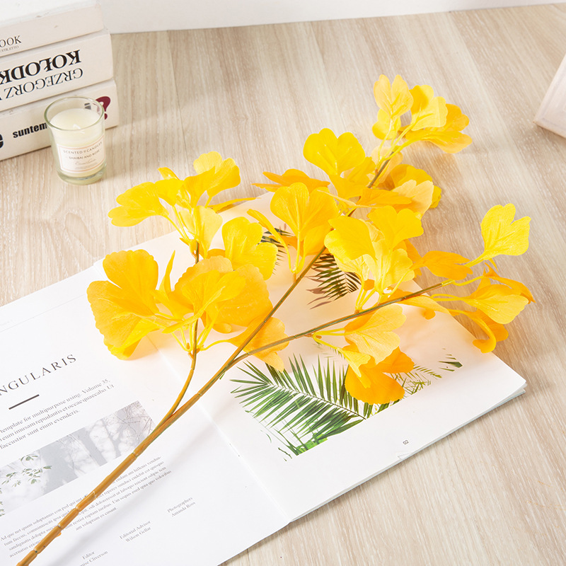 Simulation of Ginkgo Leaf Silk Flower Dining Hall Decoration Simulation Plant Inserted Long Pole Single Branch Gingko Branches Wedding building props