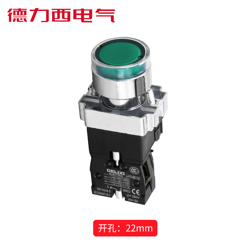 Dresi LAY5-BW3 22mm green with lamp self-reset 1 often open a normally closed metal flat button switch button