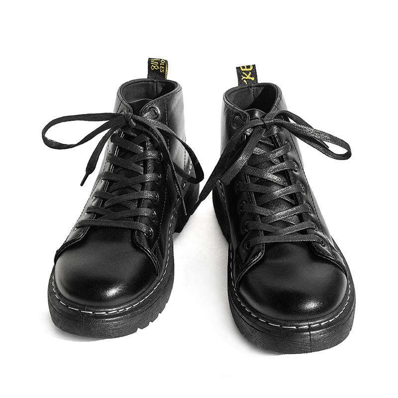 Autumn and winter plus velvet cotton shoes black Martin boots net red British style leather boots snow boots ins tooling high-top trendy men's shoes