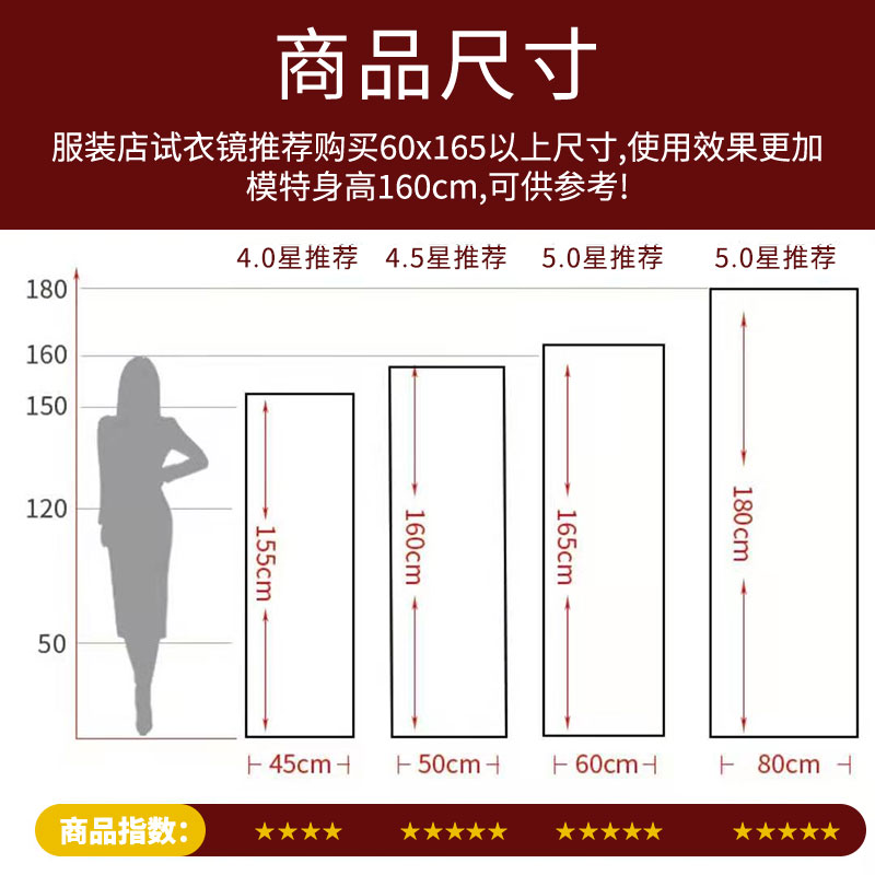 Full-length mirror Household full-length mirror Wall-mounted bedroom fitting mirror Clothing store thin beauty mirror Girl light luxury makeup mirror