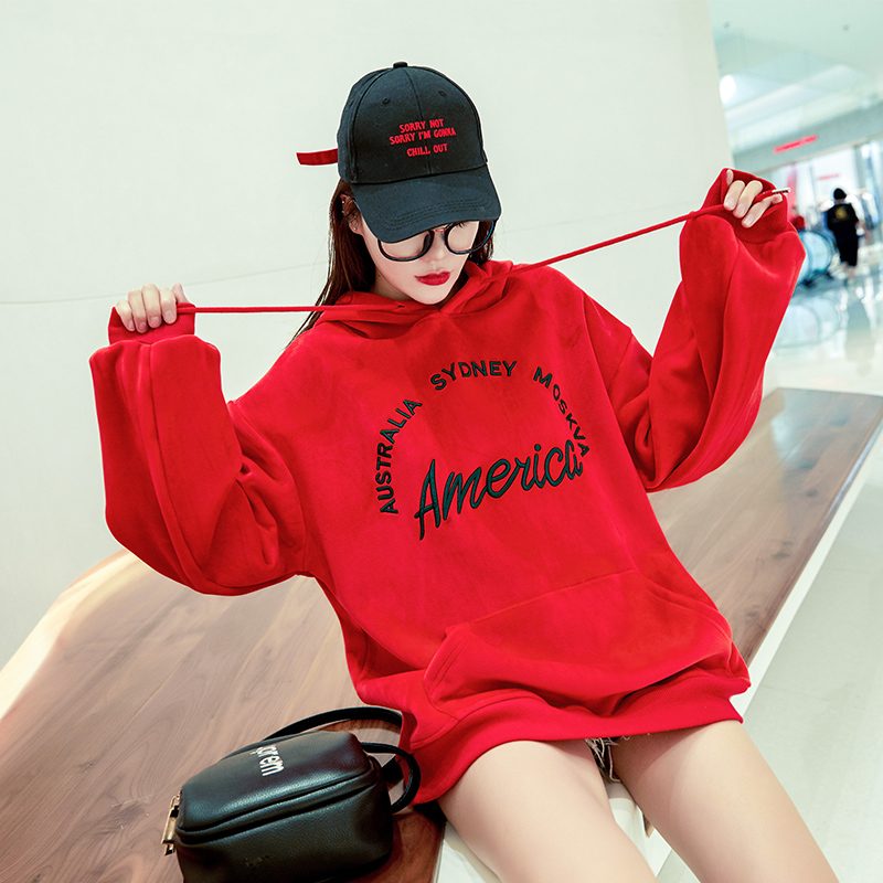 Embroidered pocket for drawing rope with thread kangaroo pocket