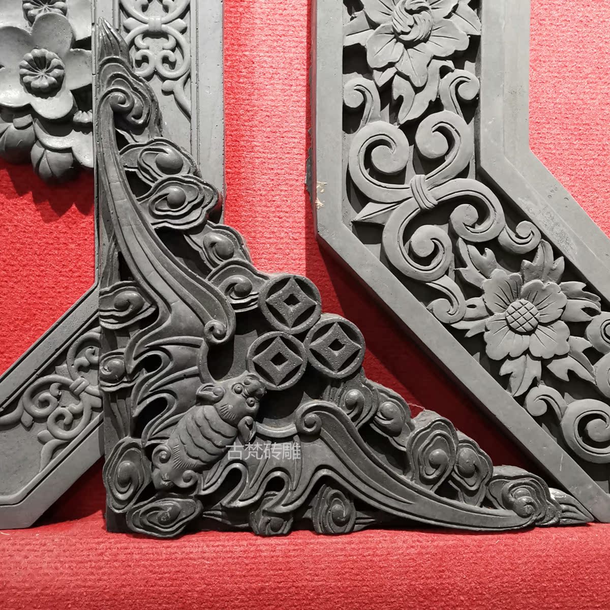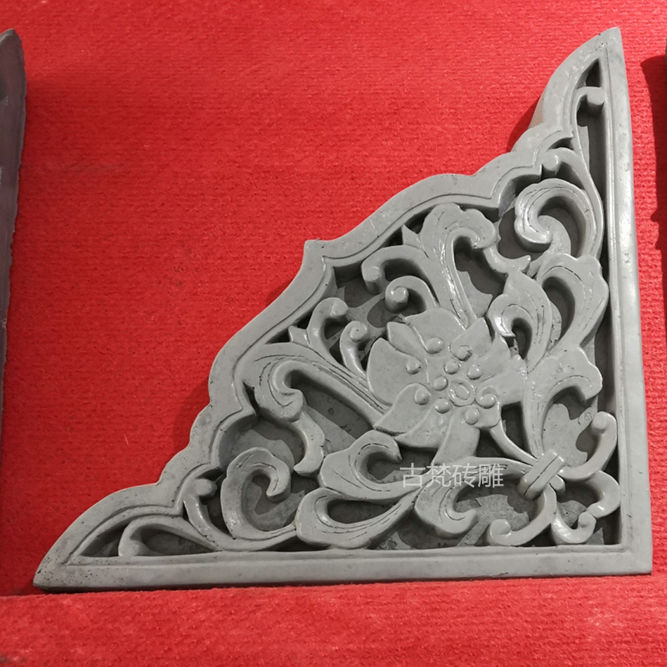 Ancient fan peony corner flower Retro-style four-corner decoration Antique photo wall Shadow wall background wall Ancient building green brick building materials