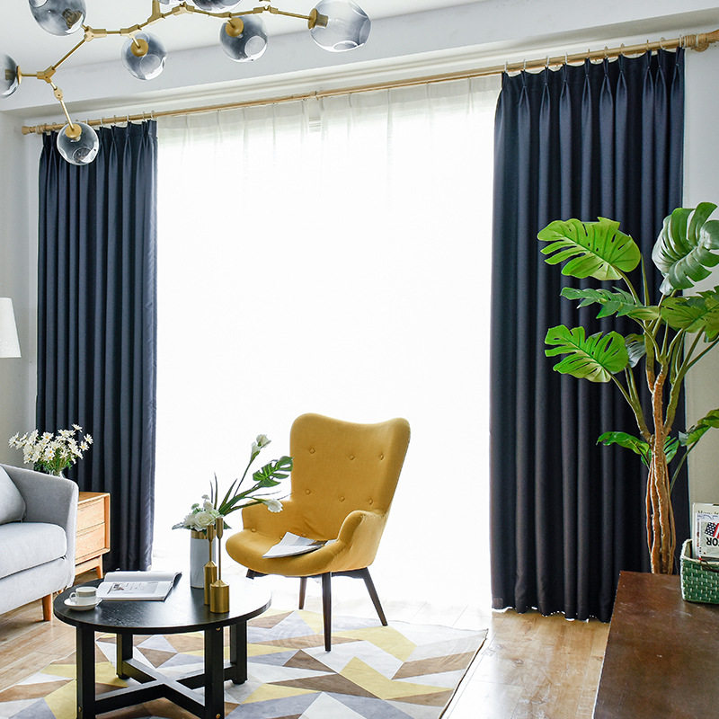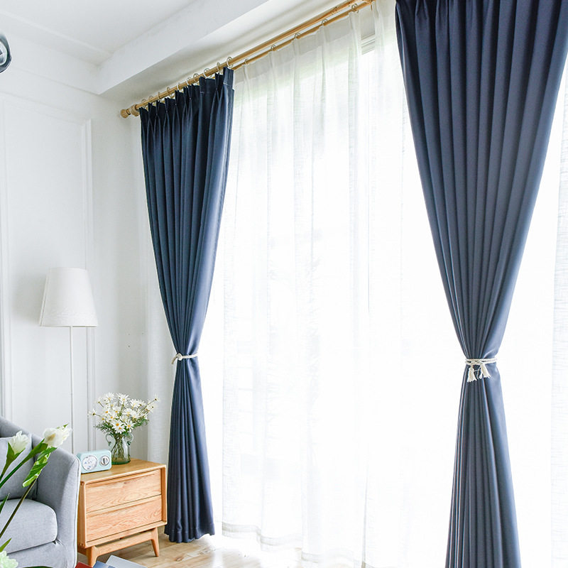 Modern minimalist shading environmental protection matte dark blue imitation silk high-precision curtain Xi'an free on-site measurement and installation