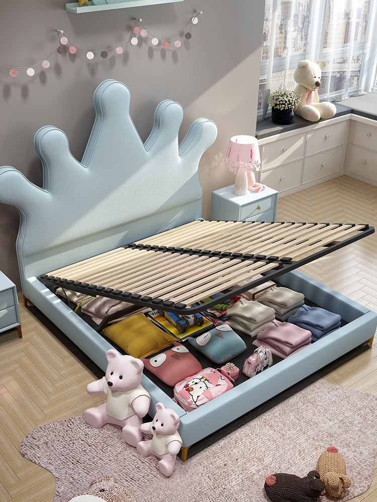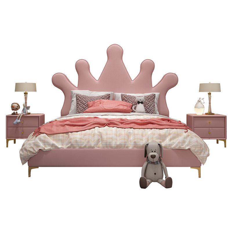 Cloth art children's bed single baby bed girl princess bed 1 5 meters child simple bedroom solid wood bed pink