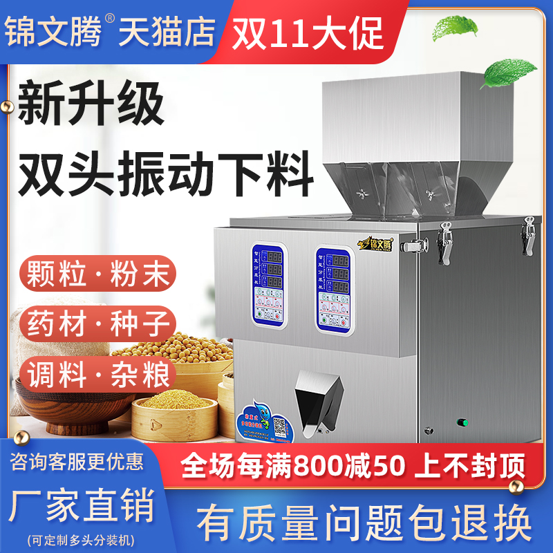 Brocade Tenten Double Head Split Machine Packaging Machine Full Automatic Granular Powder Bulls Weighing Filling Machine Five Valleys Grocery Grain Dry Goods Medicinal Pills Diamond Painting Three Heads Four Heads Five-Headed Quantitative Split Charging Machine Large
