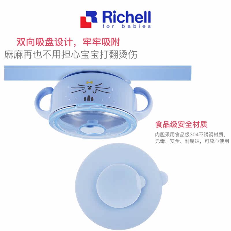 Brand Clearing Japan Richell Lichel Stainless Steel Water Injection Bowl Baby Handle Children's Tableware