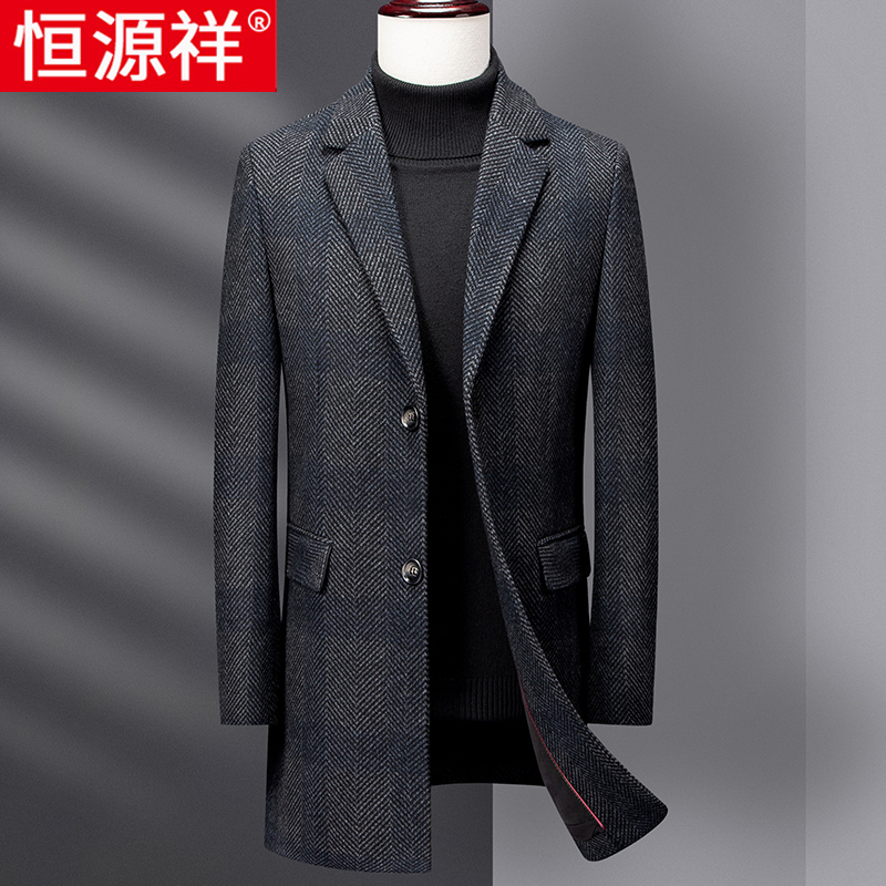 Hengyuanxiang men's woolen coat suit trend thickening windbreaker mid-length woolen men's autumn and winter nylon jacket
